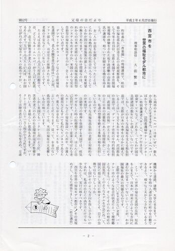 今年度、父母の会60周年。 2023年6月8日(木)11:00より第60回定時総会を開催させて頂きました。会長として、過去60年分の広報誌「父母の会だより」を読み返し、今後の方向性として2点紹介させて頂きました。 ① 西宮市を世界の福祉モデル都市に 西宮市を世界の…