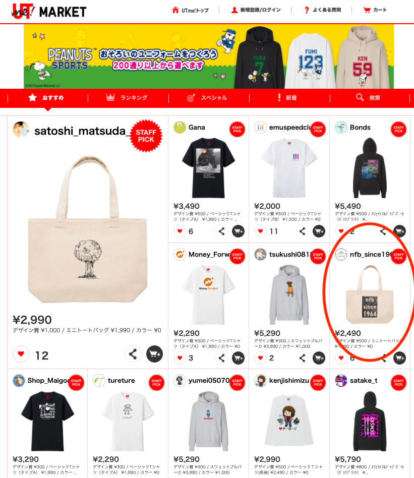 「UTme!」アプリで作成したTシャツ等のデザインを出品し、販売することが可能でマーケットでの商品発送や、購入者との取引連絡は、ユニクロが行うというもの。出品者には、Tシャツが一着売れるごとに自己申請したデザイン報酬が支払われる仕組みです。